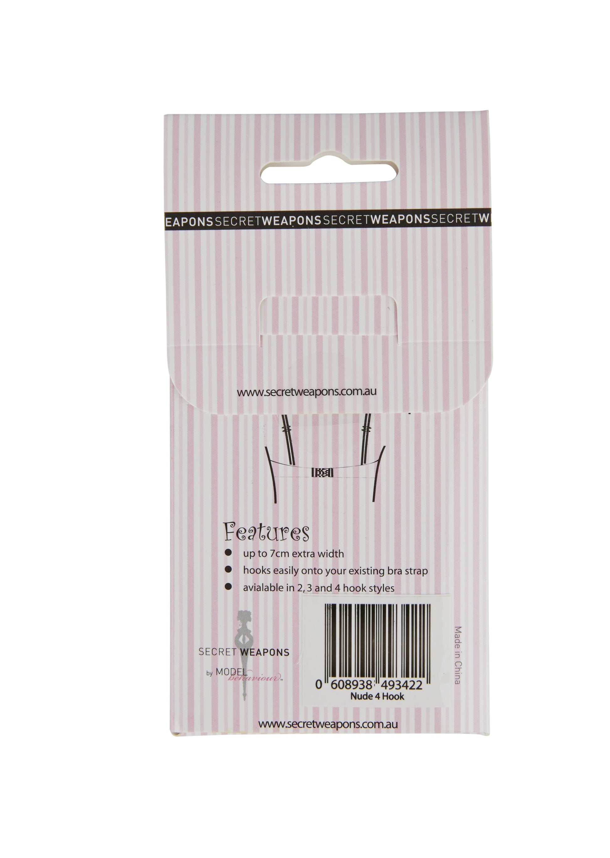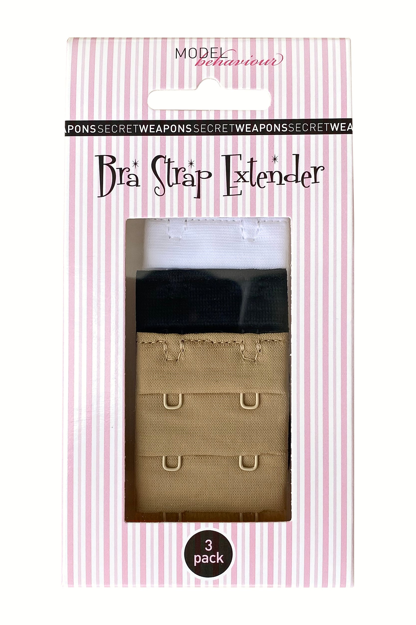 Make bras more comfortable with 2, 3 and 4 hook Bra Extenders. Just like your standard bra hooks, they attach to the hooks at the back of bra´s to extend chest band length. Detachable and reusable, Bra Extenders can extend bra chest width by up to 5cm. Super soft, nude, black and white coloured extenders with brushed backing.